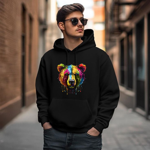 Bear Graphic Black Cotton Unisex Hoodie – Premium Streetwear Style